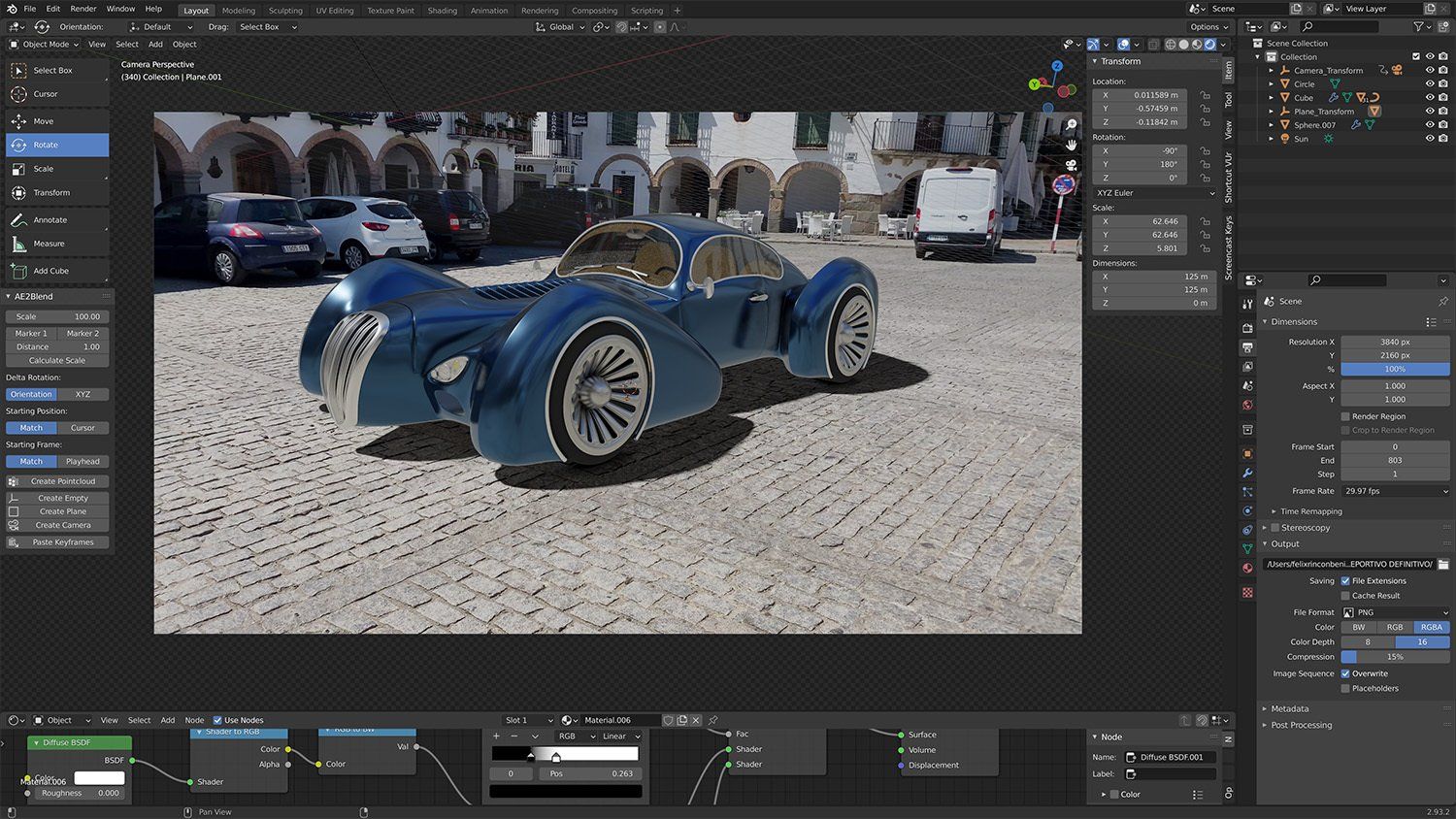 Blender es un programa informático multiplataforma, dedicado especialmente al modelado, iluminación, renderizado, la animación y creación de gráficos tridimensionales. También de composición digital utilizando la técnica procesal de nodos, edición de vídeo, escultura (incluye topología dinámica) y pintura digital.