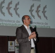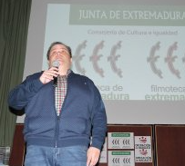 Acto inaugural a cargo del director de la Filmoteca de Extremadura, David Garrido, y del Alcalde del Ayuntamiento de Zafra, José Carlos Contreras.