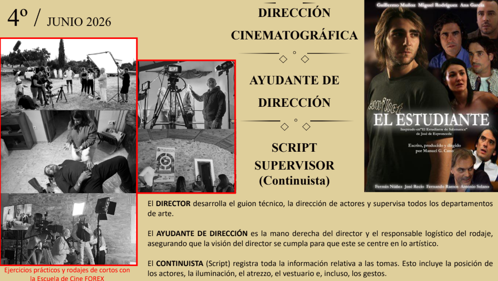 Desde FOREX, el máster ofrece 7 clases magistrales impartidas por 7 profesionales extremeños, que se celebrarán a lo largo del año en los meses de marzo, abril, mayo, junio, septiembre, octubre y noviembre, brindando una experiencia formativa única y cercana al sector audiovisual.
