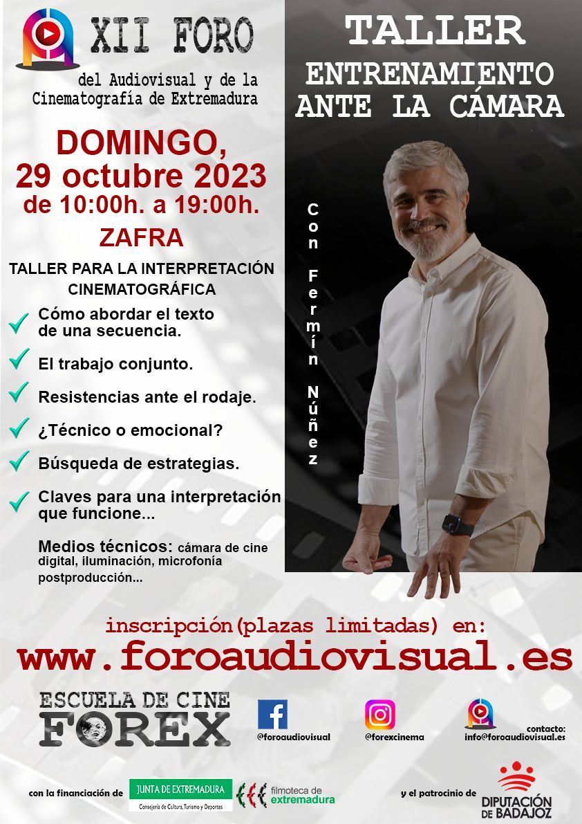 Fermín Núñez, actor y director de la compañía Samarkanda Teatro de Almendralejo, impartió un taller inmersivo en las técnicas de interpretación para cine y televisión.