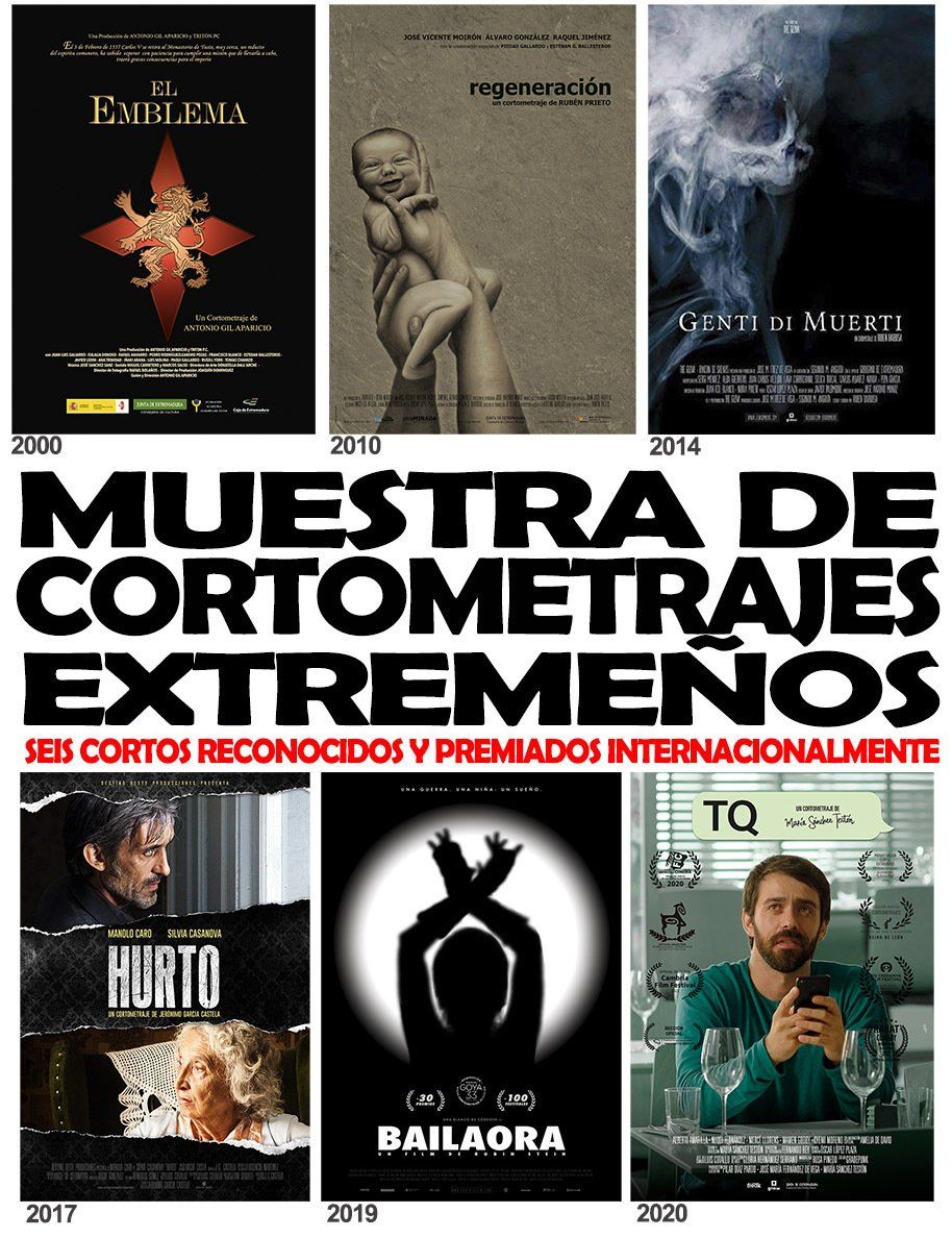 Celebramos una muestra con 6 cortometrajes extremeños que abarcan 20 años de producción cinematográfica en Extremadura. Todos ellos premiados nacional e internacionalmente. Son solo una pequeña representación de la prolífica actividad cinematográfica de la región. 2000 - 2020